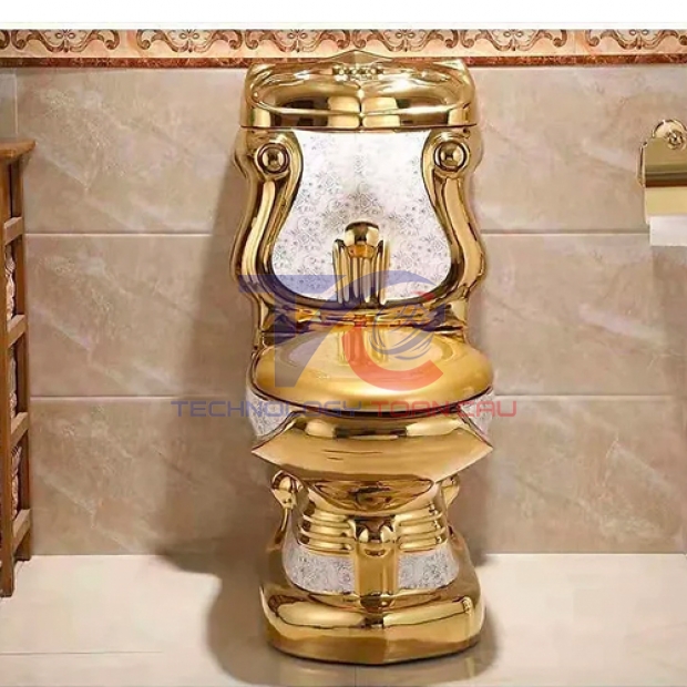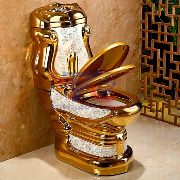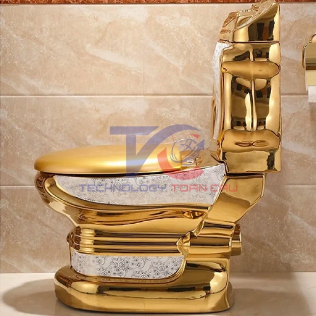 - Tên sản phẩm: Bồn cầu 2 khối màu vàng phong cách hoàng gia sang trọng